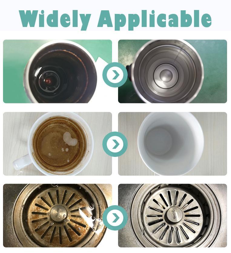 Other than coffee/tea stains, this versatile remover also eliminates hard-water scaling, stubborn grease and blacken stains. Widely applicable to various containers such as cups, pots, cutlery, flasks etc. It’s a must-have cleaner for every household.